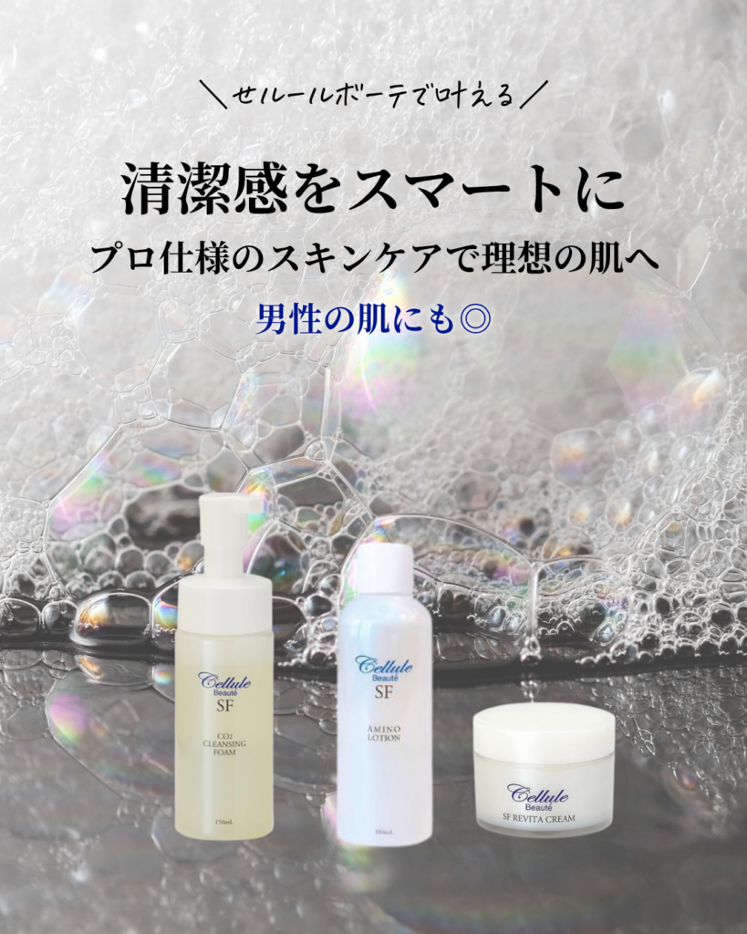 サロンでの「極上の体験」と、自宅での「確かな継続」をセットにした【メンズ肌質改善・完結コース】です。